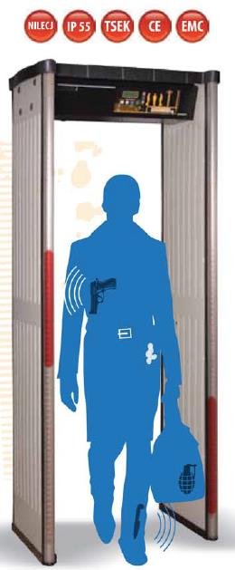 · International norms (NILECJ‐0601 L1‐5/ IEC 348/IP55 WEATHERPROOF/ /EN60950 Class1) In conformity with CE European Union Norms and produced under ISO 9001: 2008 QMS · IP 55 WEATHERPROOF– OUTDOOR OPERATION (EN 60529) · Multi‐Zone ‐ 9 Real Detection Zones (Up/Middle/Down and Left/Middle/Right) · Separate Zone Sensitivity Setting Feature · Whilst Normal Operation, displays IN/OUT Counters and Security Level on LCD without abbreviations so that Security Staff can easily understand · Capable to Detect both Ferrous and Non‐Ferrous Metallic Threat Objects Considered Dangerous by International Security Authorities. Can detect when tested both individually and in combination and Gives Audio‐Visual Alarms. Can operate at JAILHOUSE Sensitivity Spectrums!.. · SMART DETECTOR – Fast and consistent calibration, Automatic Sensitivity Program selects the correct sensitivity for a specific weapon or a recognized test object · Displays the Detected Metal Objects location on Both Side Panels LEFT/RIGHT from bottom to top with Continuous LED Zone Indicators · Detects all threat objects even concealed, hidden with camouflage and/or wrapped. Impossible for such threat objects to pass through the WTMD without causing an alarm. · No Interferences between Zones and No False Alarms · Homogeneous Magnetic Field – No Dead Points – Same Detection Capability from bottom to top · Detects Metals regardless their orientation · 20 sensitivity levels, 246 adjustable sensitivity steps at each, Preset NILECJ Sensitivity Program, Optional ‐ 5 Preset Programs · Metal Density‐Mass, Signal Strength Display at 10‐level‐VU meter with green, yellow, red LEDs easily allows sight from distance · Superior Discrimination, Precise target location identification / Graphic zone display on Control Unit · Auto Calibration (Automatically calibrates itself up to Environmental Conditions) No Set Up Changes necessary when relocated and/or new Magnetic Objects brought Near‐By · Human Health friendly Very Low Frequency VLF technology, No affects to Pace Makers, Pregnant and Magnetic Media · Green/Red bicolor traffic through LEDs easily allows sight from distance 60 Persons/Minute and LED Alarm Indicators on side panels · Operation Mode, Programming Parameters and Error Codes are Displayed on Wide 4x20 Characters LCD Screen · Special Environmental Magnetic Interference Display Menu · Adjustable audio alarm at 10 tons/level or Soundless (Mute) operation · Adjustable Alarm Duration (Detection Speed Regardless Alarms) |