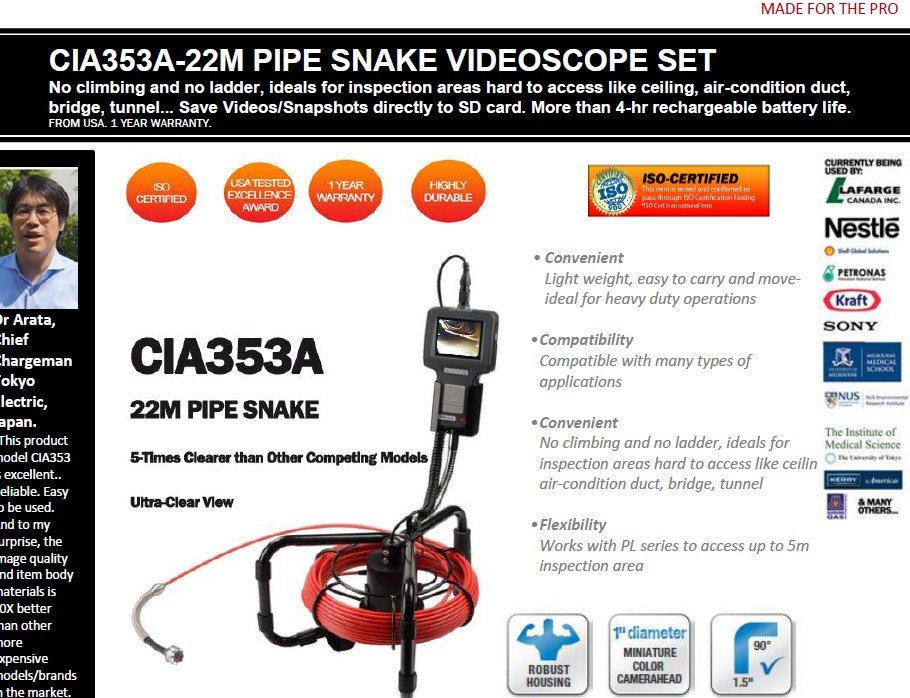 You are here: Home Products Inspection Cameras/Borescopes/VideoScopes/FiberScopes CIA353E + CIA353E01 - 22M PIPE STALKER WITH OPTIONAL CAMERA HEAD LOCATOR - LATEST