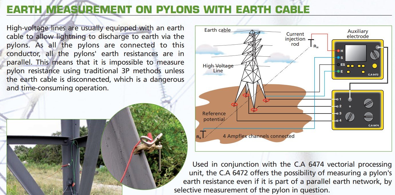 The C.A 6474 is designed for use with the C.A 6472 earth tester to measure pylon earths