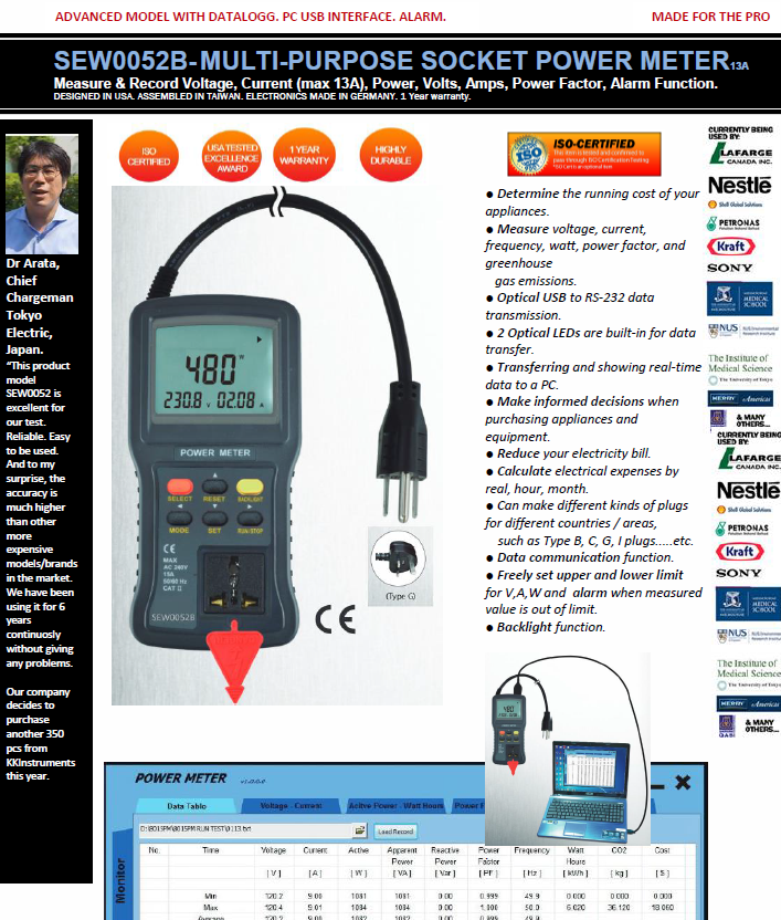 Featured item SEW0052B DATALOGGING HEAVY DUTY MULTI-PURPOSE SOCKET ALARM POWER METER (MAX 13A)-230V UK with Alarm/Windows Software(voltage, current, frequency, watt, power factor)
