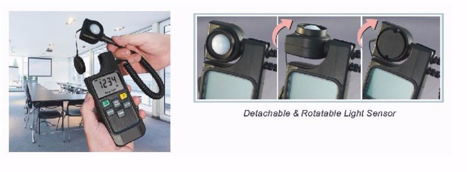 You are here: Home Products Light/Lux meters CEN0063-USA 750 CLASS AA HANDHELD LIGHT METER WITH FLEXIBLE ROTATABLE SENSOR