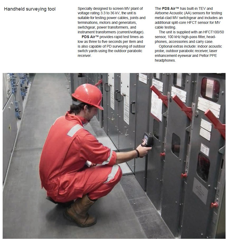 - Measurement of PD in metal-clad switchgear/plant with airborne acoustic sensors and accurate digital TEV-dB measurements.